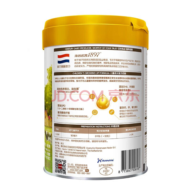 商品相册:海普诺凯1897荷致荷兰优质奶源儿童成长配方奶粉4段(3岁起) 800g【乳铁蛋白】第