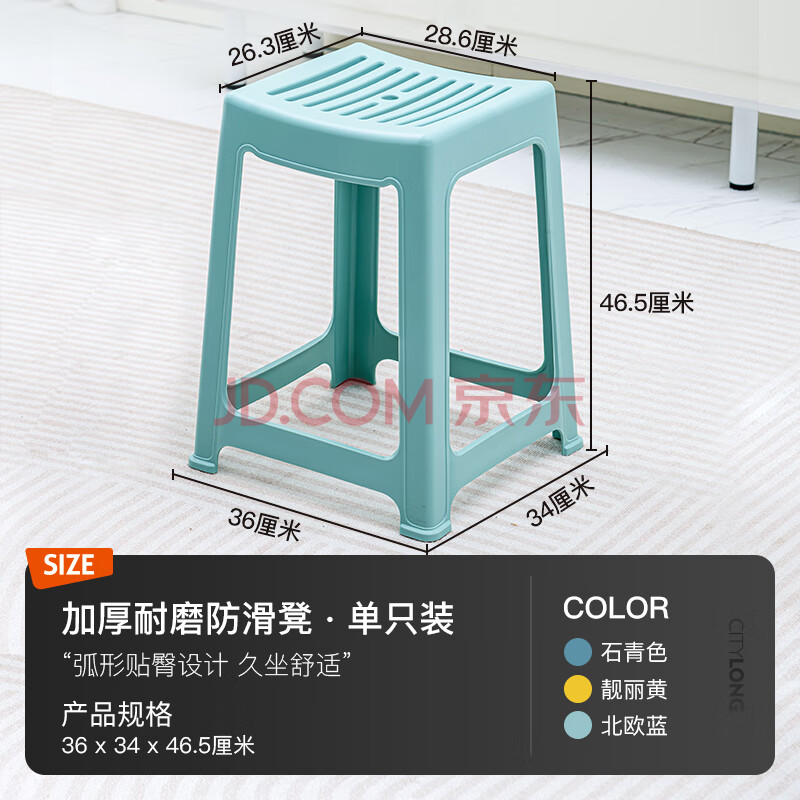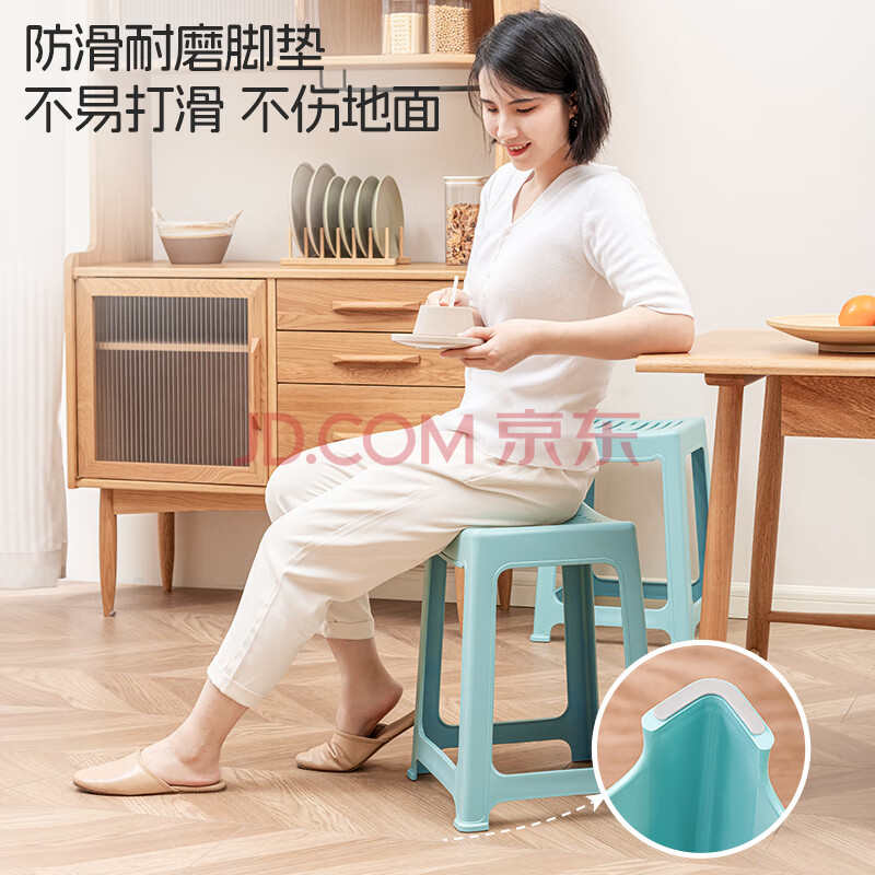 商品相册:禧天龙方凳高凳塑料凳加厚耐磨家用餐椅凳子镂空浴室凳 北欧蓝 1个装第