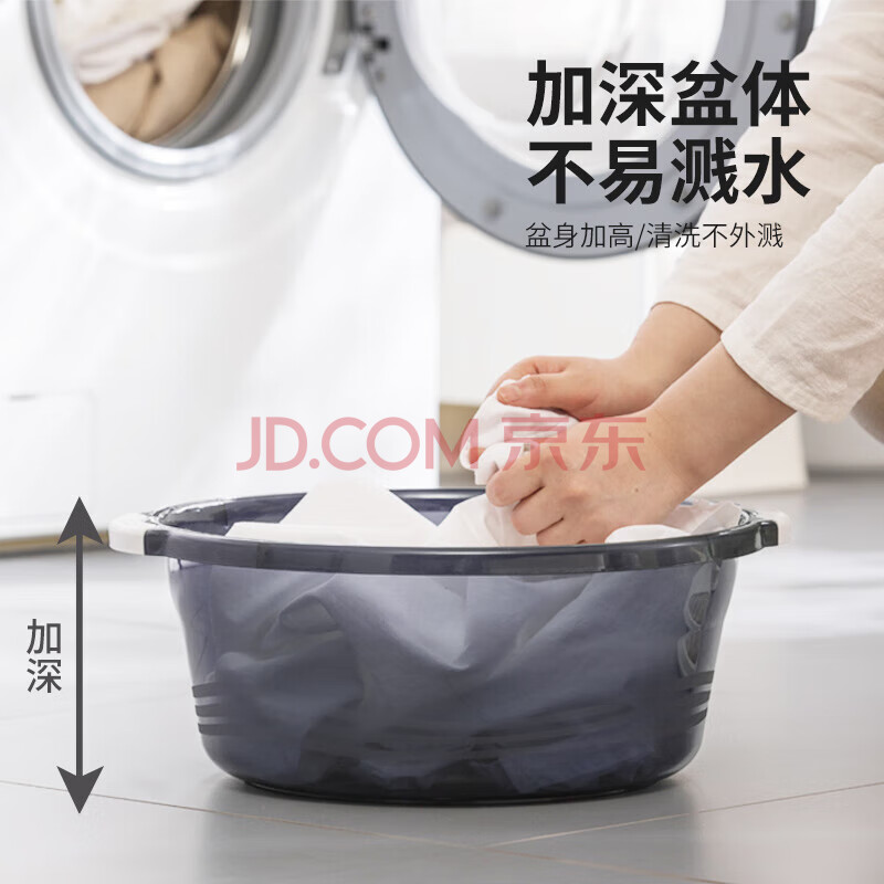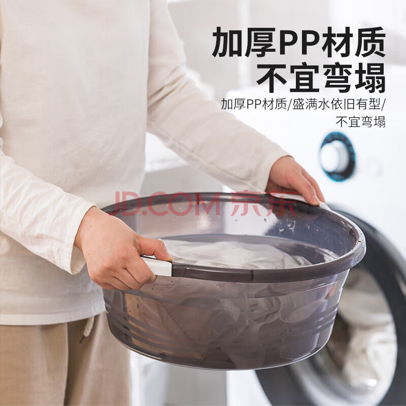 商品相册:茶花 洗脸洗头盆 婴儿洗澡盆 塑料盆子洗衣盆 大水盆38cm 暖灰 1只装第