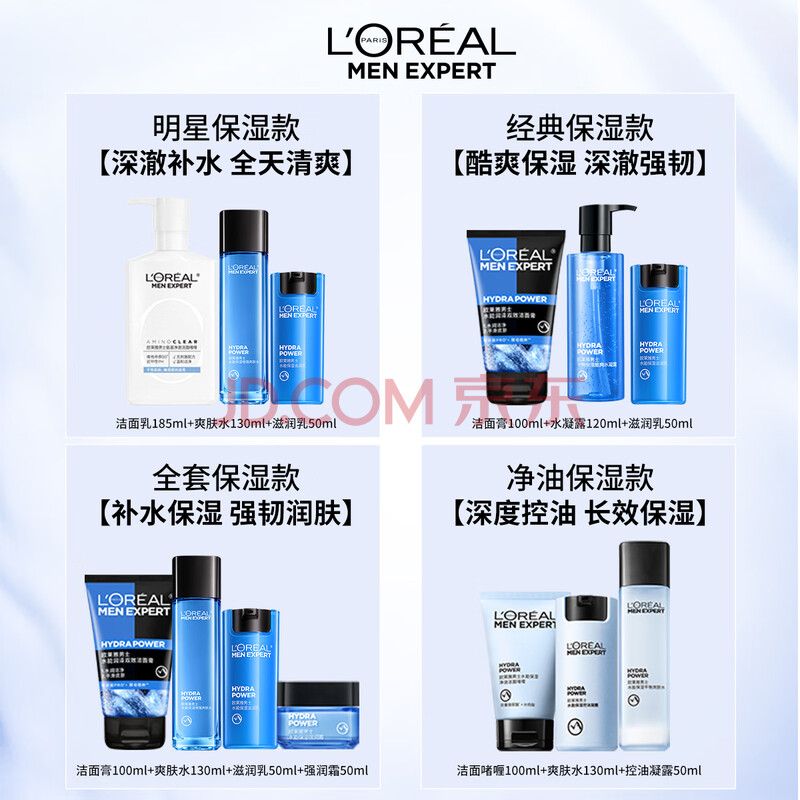 商品相册:欧莱雅男士护肤品套装水能三件套洗面奶水乳补水保湿生日礼物送男友第