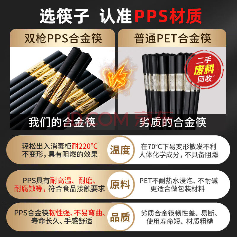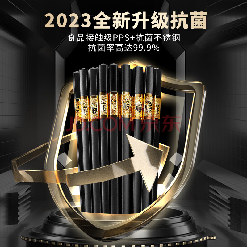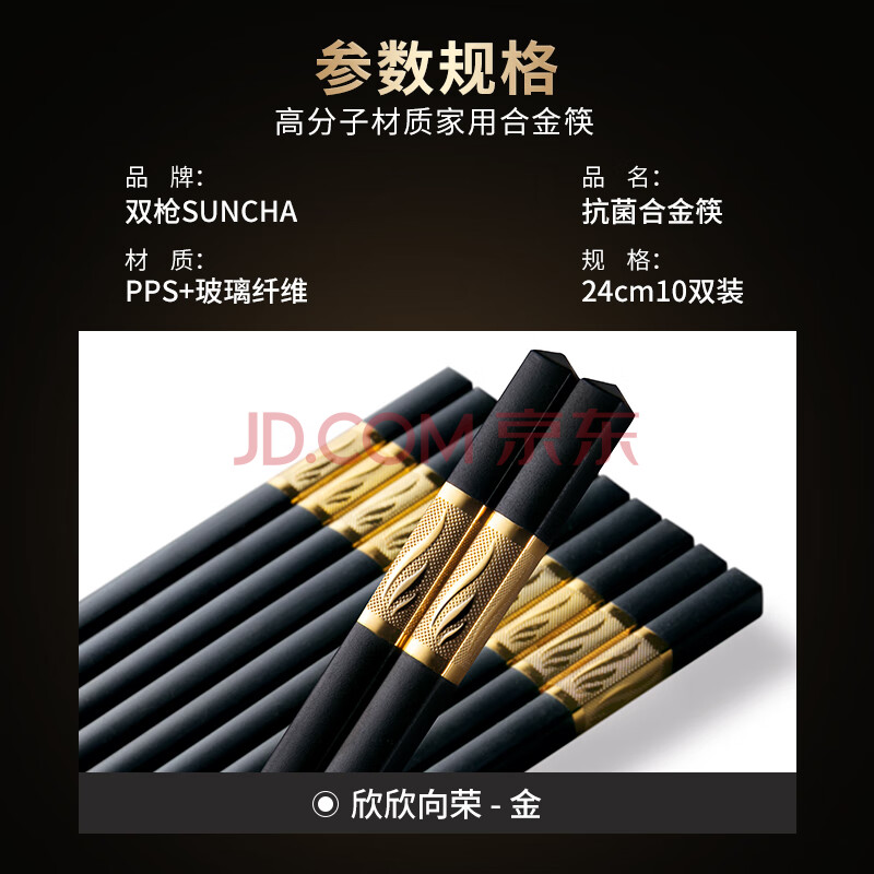 商品相册:双枪合金筷子 酒店家用创意筷 不发霉套装 10双装 欣欣向荣金色 第