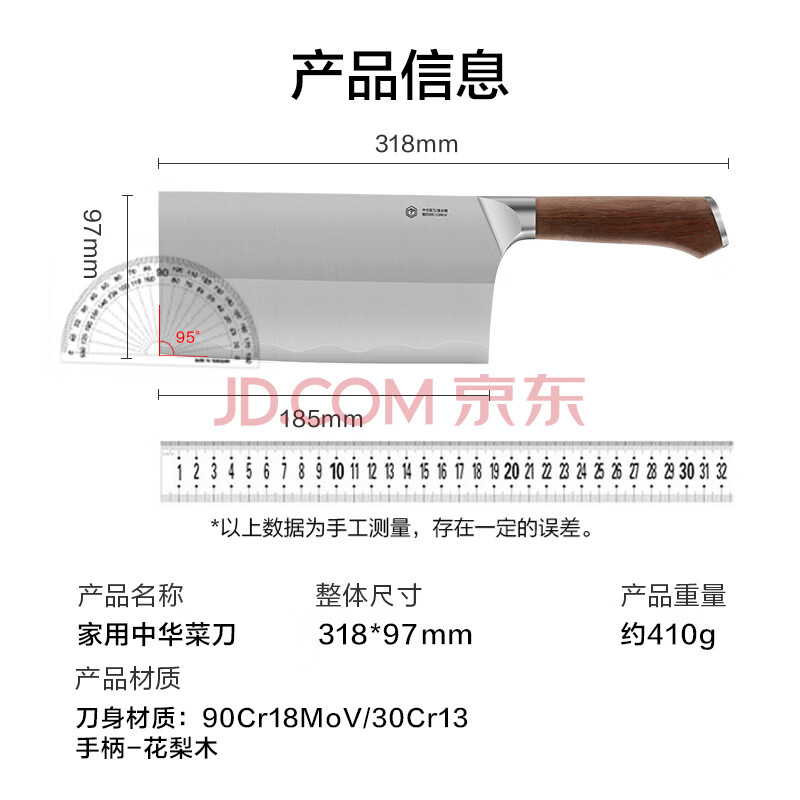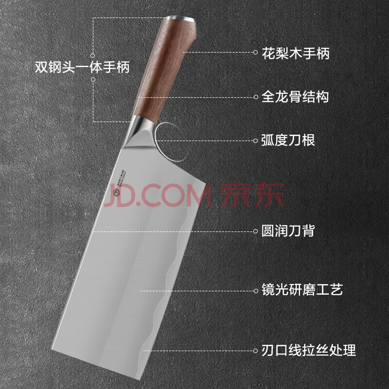 商品相册:京东京造 9系菜刀 家用切片菜刀具更省力花梨木手柄90Cr【顶格9铬】第