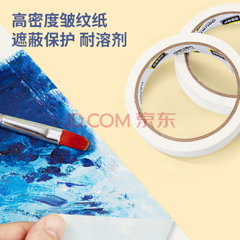 商品相册:得力(deli)美纹纸胶带 15mm*20y*145um 美术美工分色 装修遮蔽美缝贴膜刷漆保护无痕 学习用品 10卷 30669第1张/共5