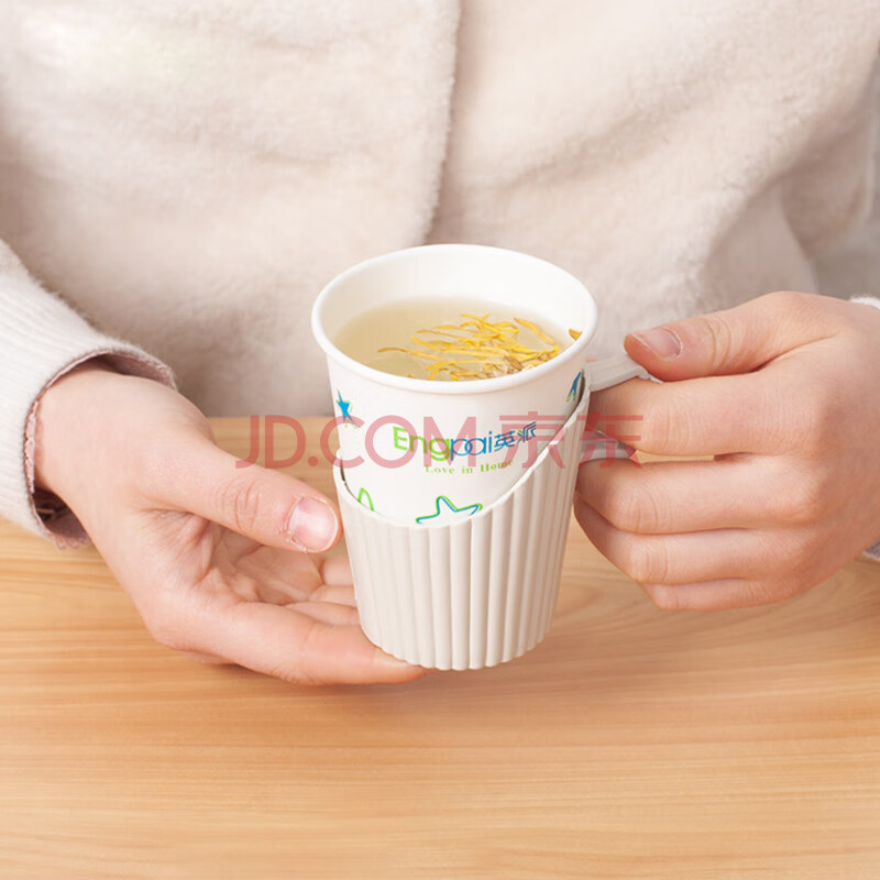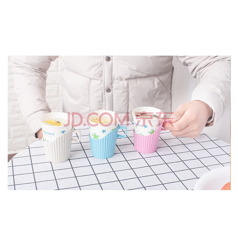 商品相册:全适一次性纸杯托办公室茶托杯座开水隔热套纸杯盒塑料杯套米色8个装第