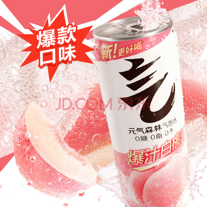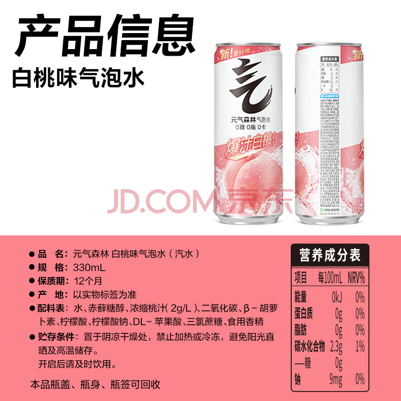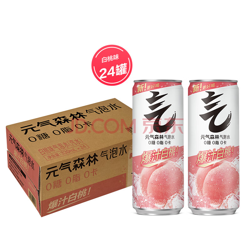 商品相册:元气森林0糖0脂0卡 白桃味 无糖气泡水330mL*24罐装饮料第