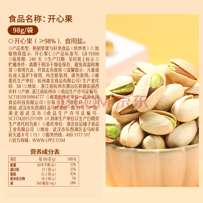 商品相册:良品铺子开心果每日坚果干果孕妇儿童零食休闲食品小吃98g第
