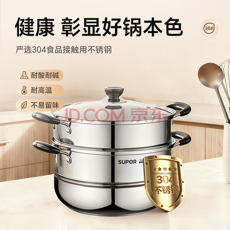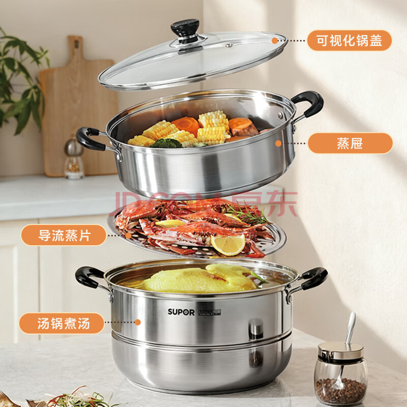 商品相册:苏泊尔SUPOR 蒸锅真味鲜不锈钢双层复底28cm蒸鱼锅汤锅蒸笼EZ28BS05第1张/共6