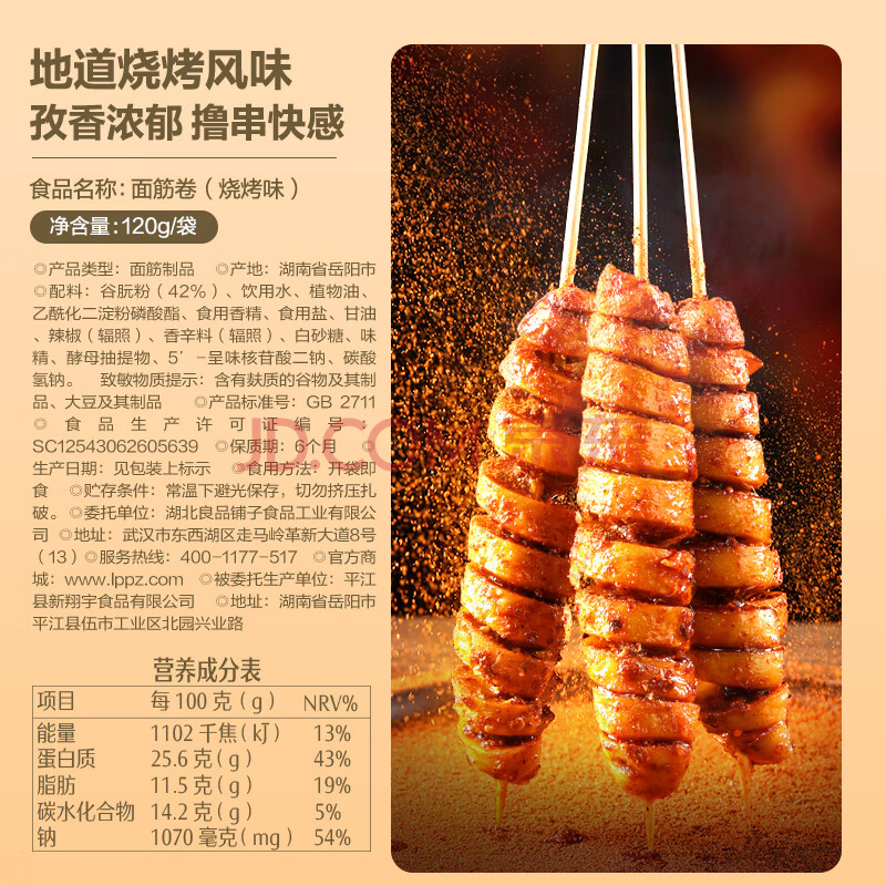 商品相册:良品铺子 面筋卷烧烤味烤面筋卷网红辣条味豆干小零食儿时怀旧小吃120g第