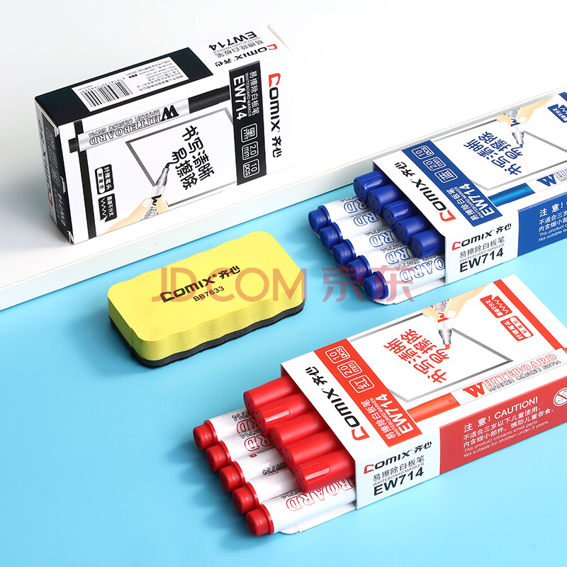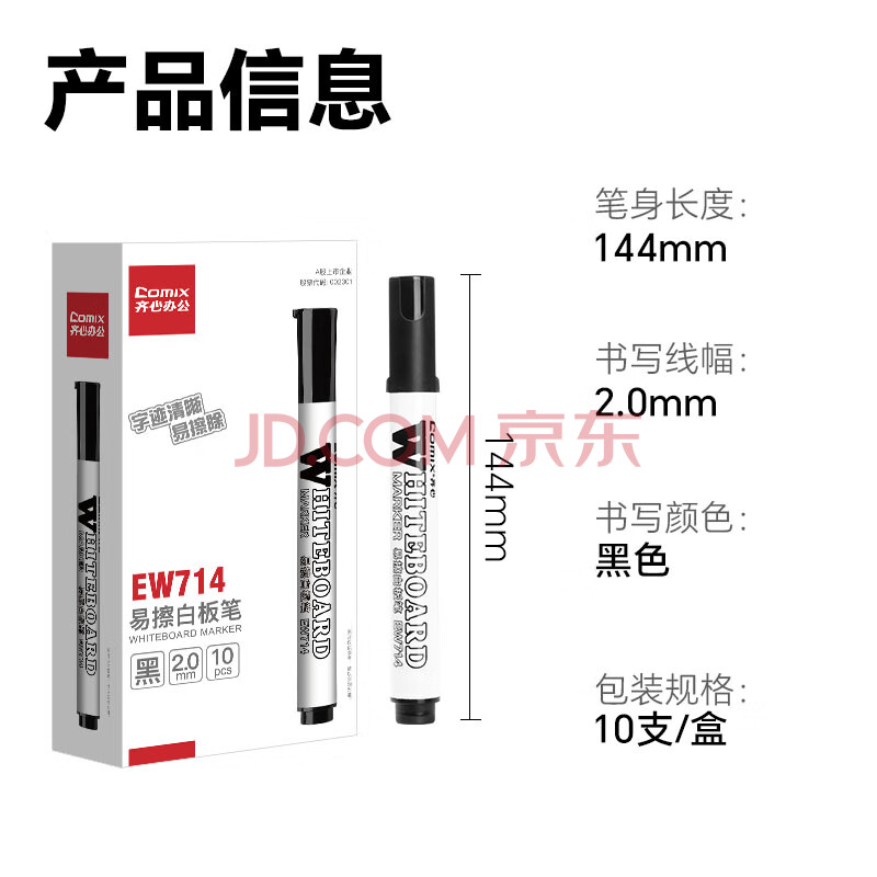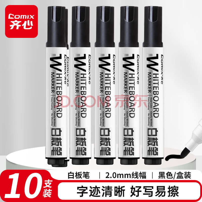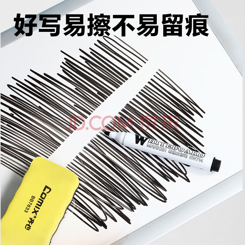 商品相册:齐心(Comix)【热门商品】粗头易擦可擦办公会议白板笔黑色 耐磨耐用老师培训教学 10支/盒 EW714第