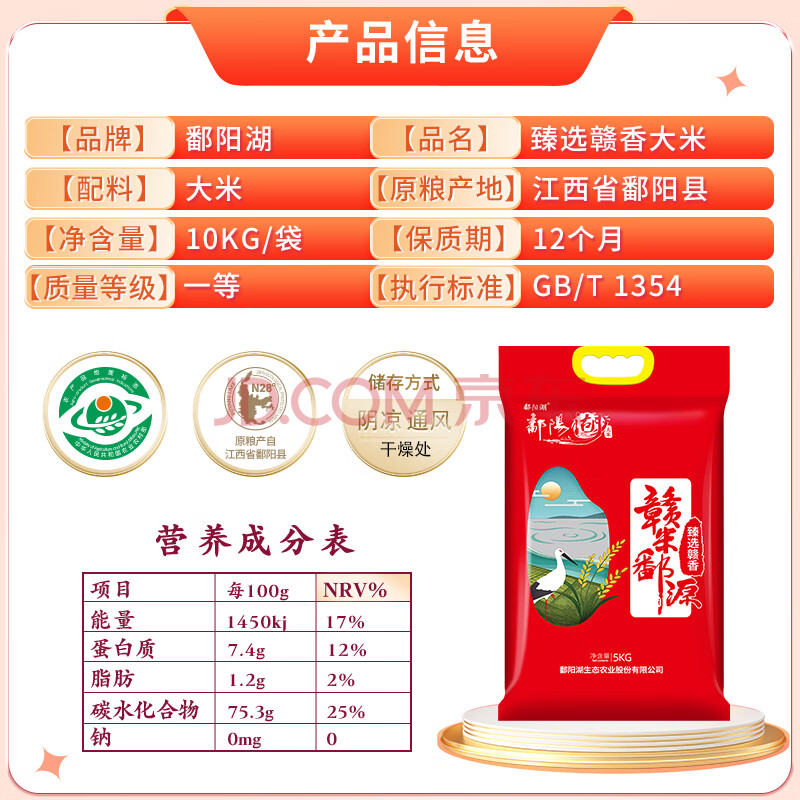 商品相册:鄱阳湖臻选赣香大米10斤 江西丝苗米 长粒香大米5kg第