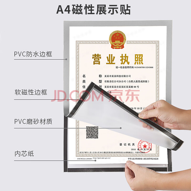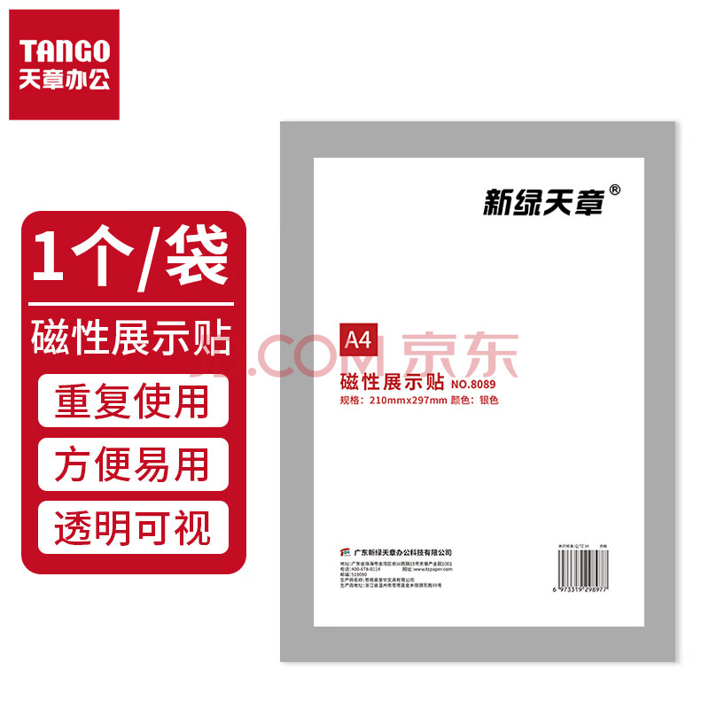 商品相册:天章 (TANGO)A4磁性展示贴免打孔银色 营业执照保护套证书A4贴磁吸牌胶条证照副本框公告栏墙贴1个装第1张/共8