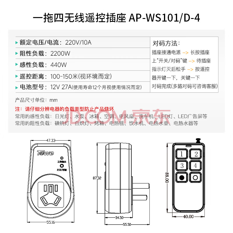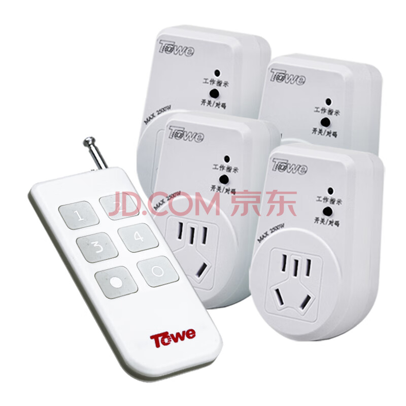 商品相册:TOWE同为一拖四无线遥控插座 220V四路智能遥控插座10A家用遥控插座AP-WS101/D-4 第