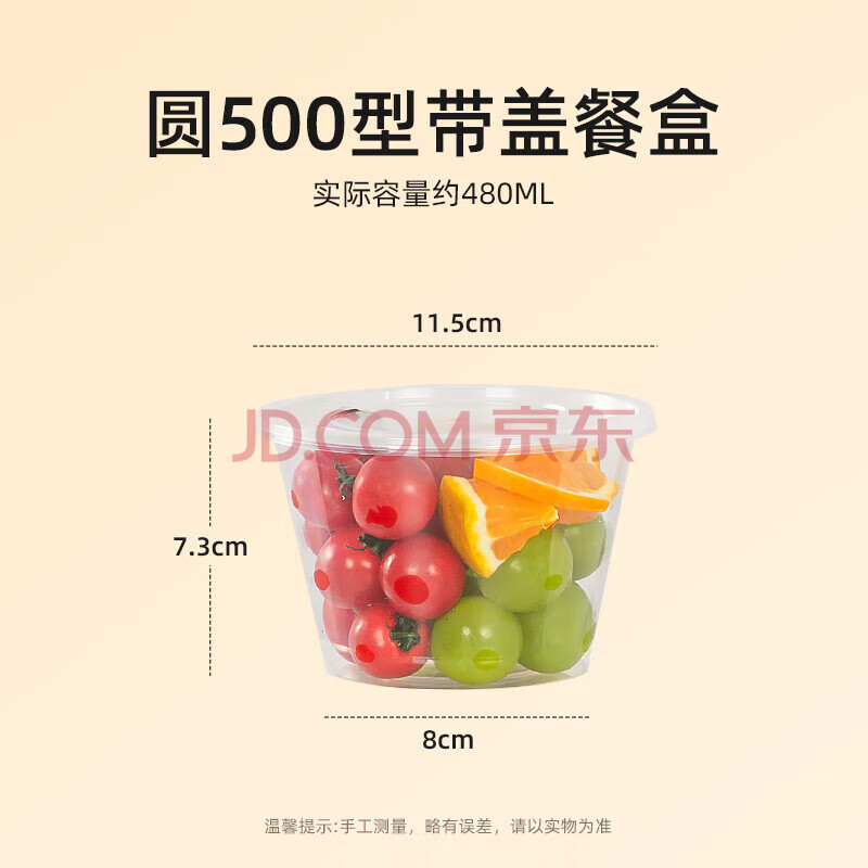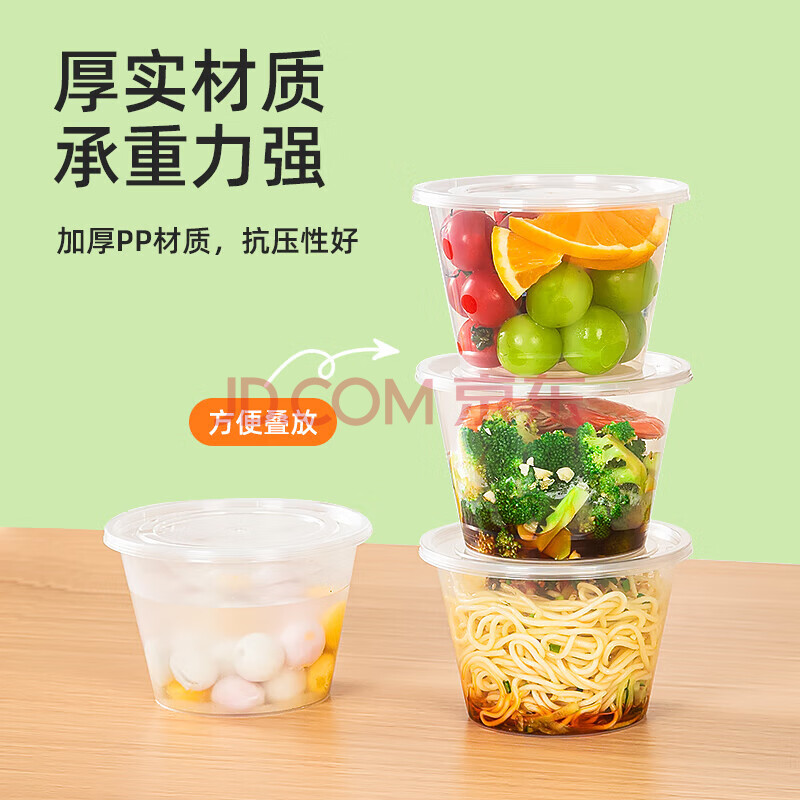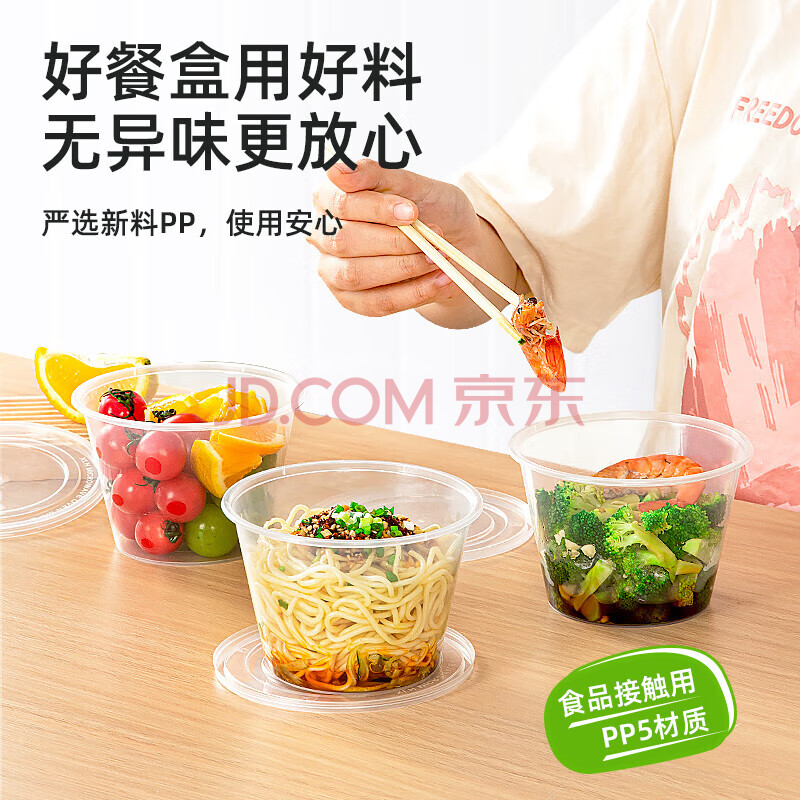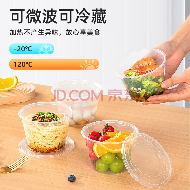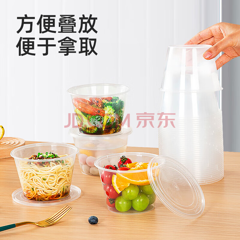 商品相册:特美居(temeiju)一次性饭盒圆形透明塑料快餐盒加厚带盖打包盒餐具450套装500型第