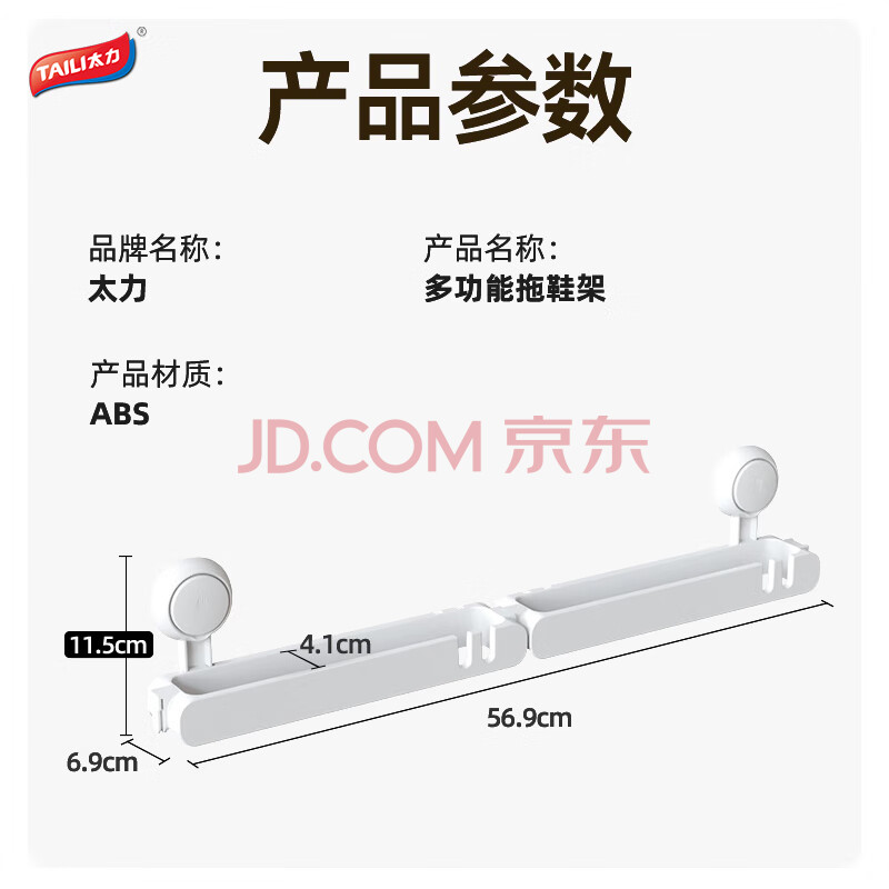 商品相册:太力卫生间拖鞋架免打孔门后浴室上墙置物架收纳拖鞋挂架壁挂沥水架第