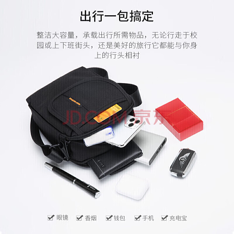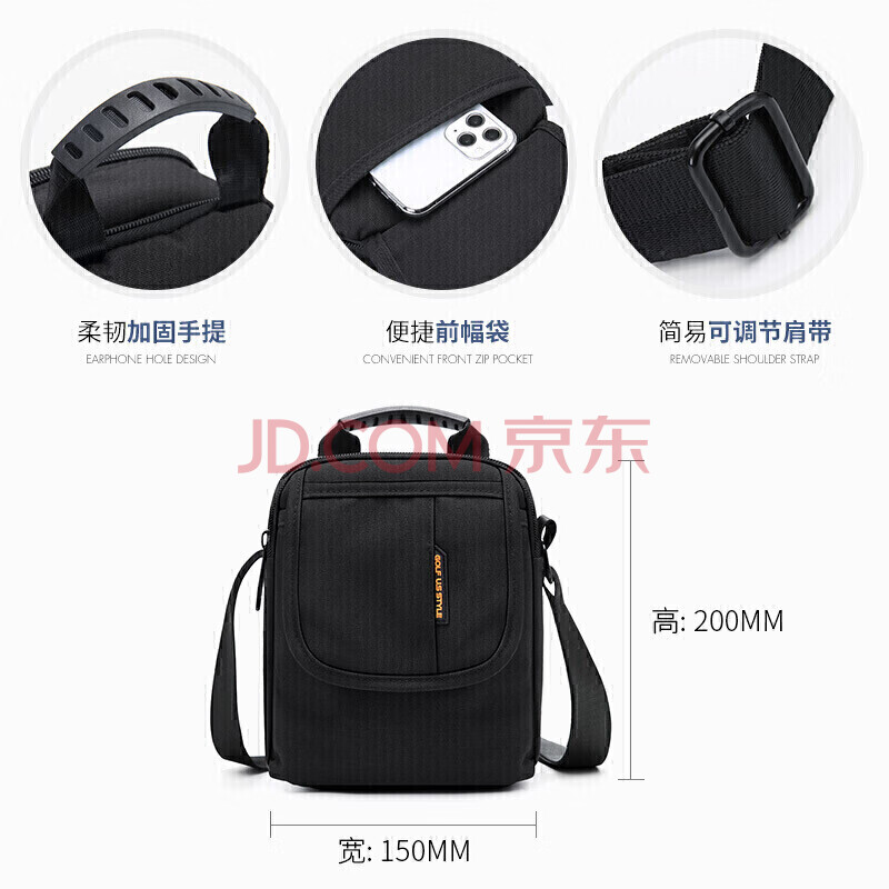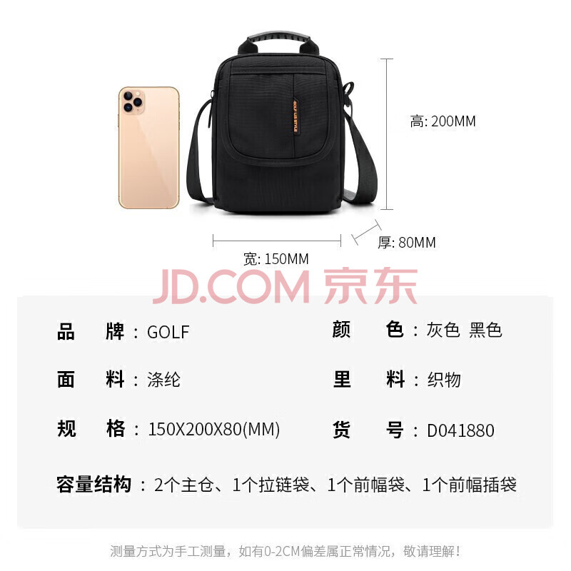 商品相册:高尔夫(GOLF)单肩包男士休闲斜挎包男女帆布多隔层手机包防泼水迷你运动挂包第1张/共9
