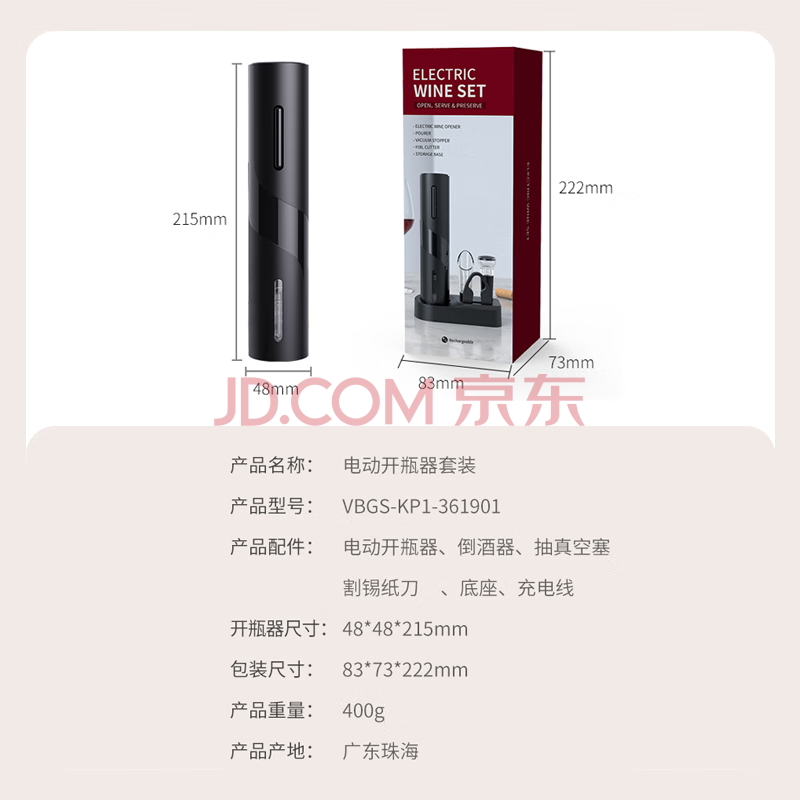商品相册:CLITON电动红酒开瓶器充电式家用全自动开红酒器启瓶器倒酒器5合1套装第
