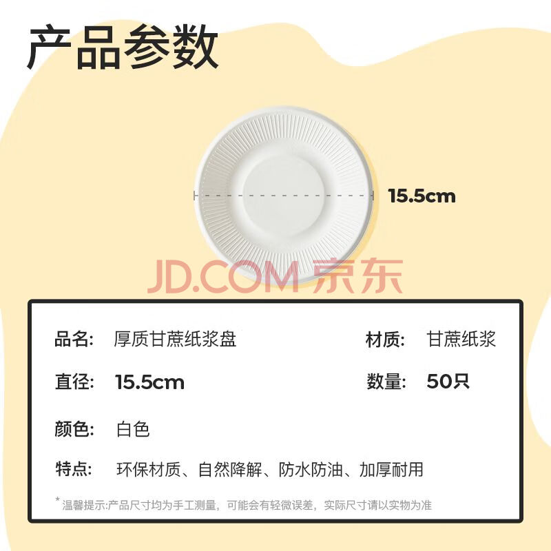 商品相册:特美居(temeiju)6英寸一次性盘子蛋糕纸盘碟可降解餐盘户外野餐盘餐具50只15.5cm第