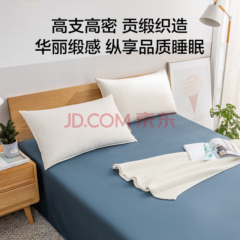 商品相册:京东京造 60支长绒棉贡缎床单 A类纯棉床盖全棉床单单件 245x250cm 灰蓝第