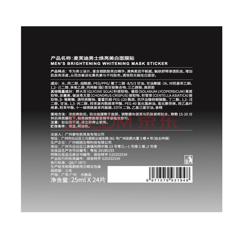 商品相册:麦芙迪男士面膜美白控油补水保湿淡化痘印提亮肤色收缩毛孔护肤品24片 第