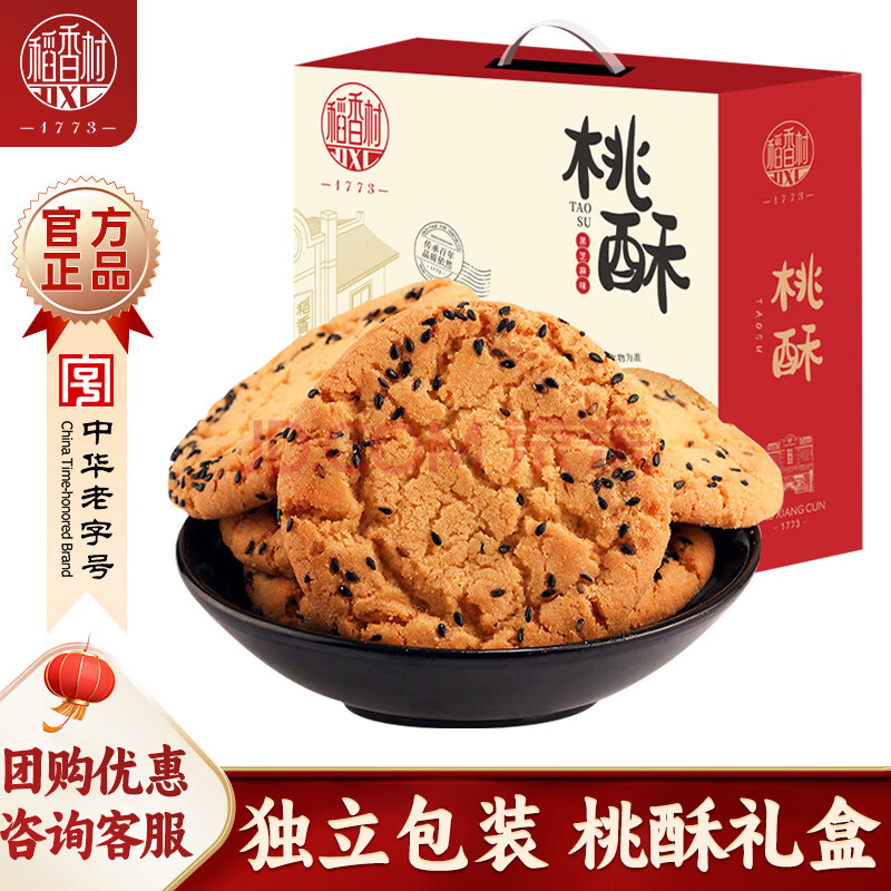商品相册:稻香村 原味黑芝麻桃酥800g整箱礼盒 传统糕点手工饼干曲奇零食团购送礼第1张/共7