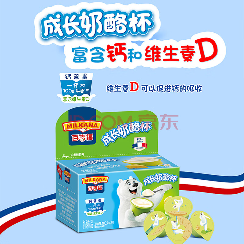 商品相册:百吉福(MILKANA) 【热门商品】儿童成长奶酪杯芝士休闲即食儿童零食 原味100g*4盒第
