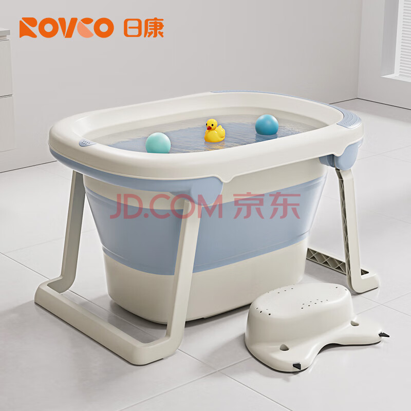 商品相册:日康(rikang)泡澡桶 儿童折叠浴桶婴儿洗澡盆 宝宝洗澡桶 赠浴凳蓝色X1026-1第1张/共7