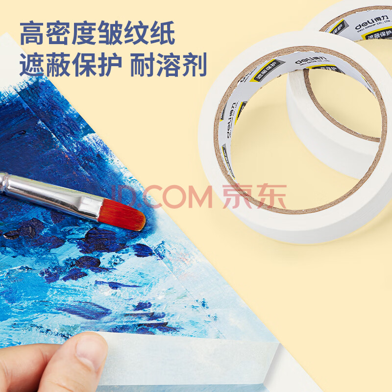 商品相册:得力(deli)美纹纸胶带 20mm*20y*145μm 美术美工分色 装修遮蔽美缝贴膜刷漆保护无痕 学习用品 6卷 30667第