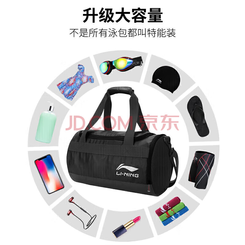商品相册:李宁LI NING 游泳包沙滩玩水收纳防水袋男女干湿分离防水包700-1黑色第1张/共5