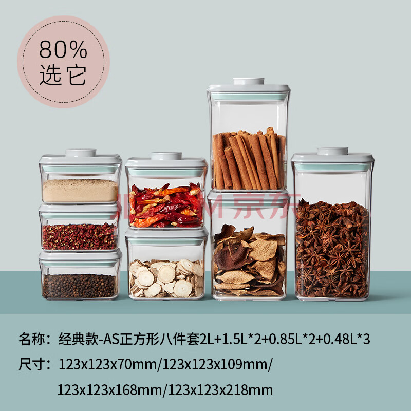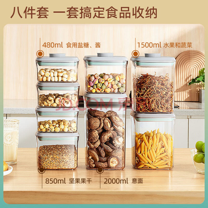 商品相册:安扣(ANKOU) 密封罐食品级储物罐杂粮收纳盒防潮保鲜储物密封盒8件套正方形第1张/共7