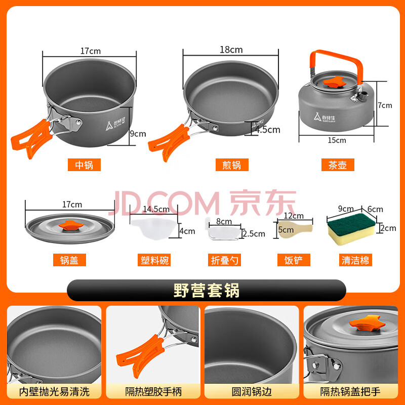 商品相册:尚烤佳(Suncojia) 户外锅具 野餐套锅 自驾野餐炊具 便携锅具 烧水壶 野外餐具套装第