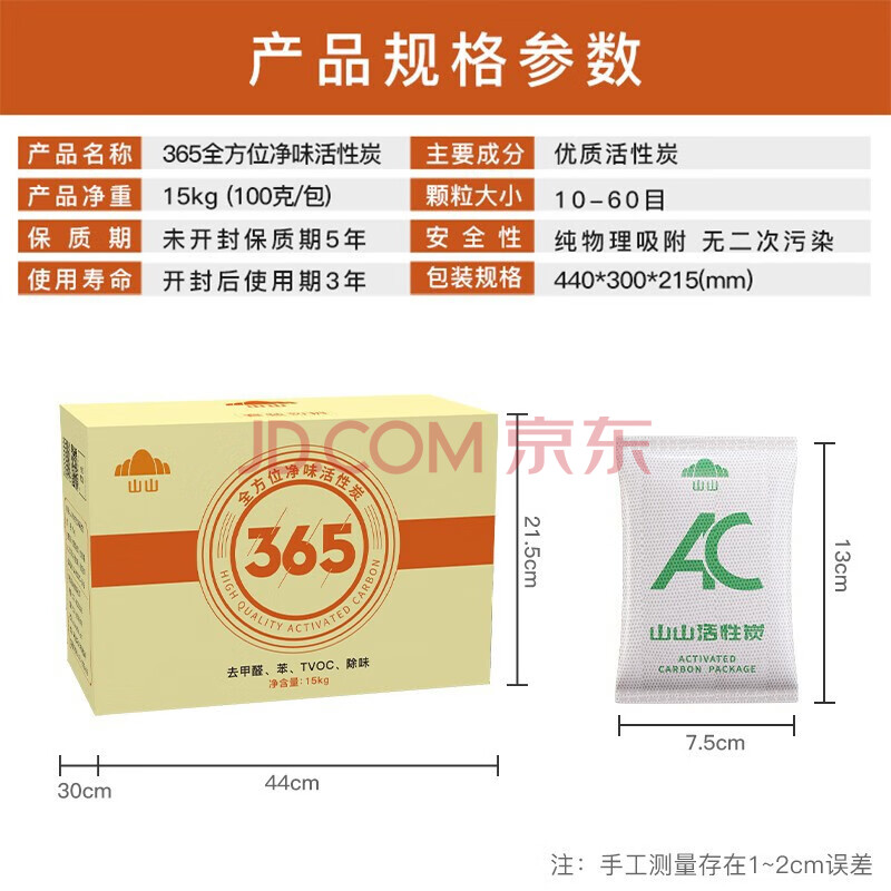 商品相册:山山超值装15kg活性炭除甲醛室内装修除异味去甲醛新房家用甲醛清除剂第