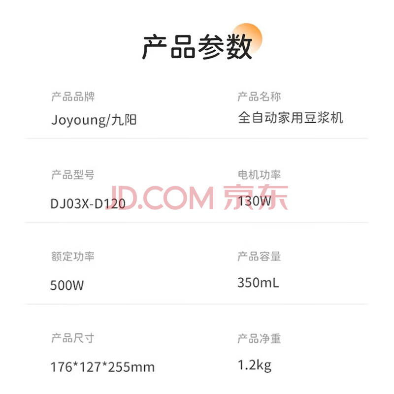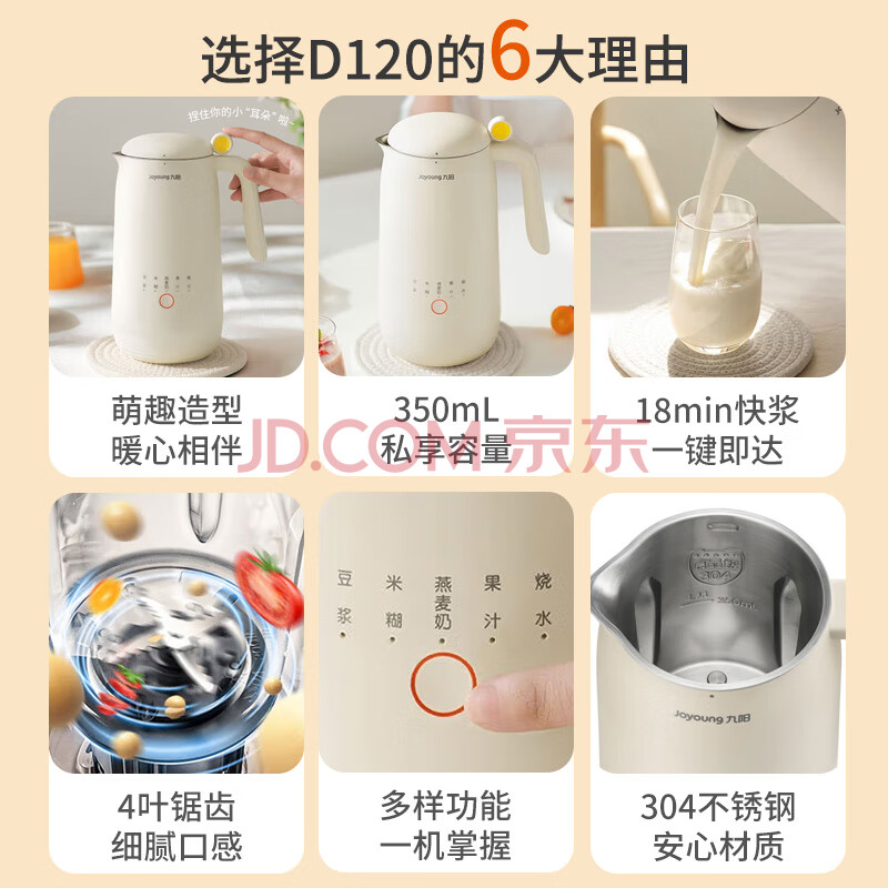 商品相册:九阳(Joyoung)迷你豆浆机小型破壁免滤1-2人小容量家用米糊机DJ03X-D120(白)第