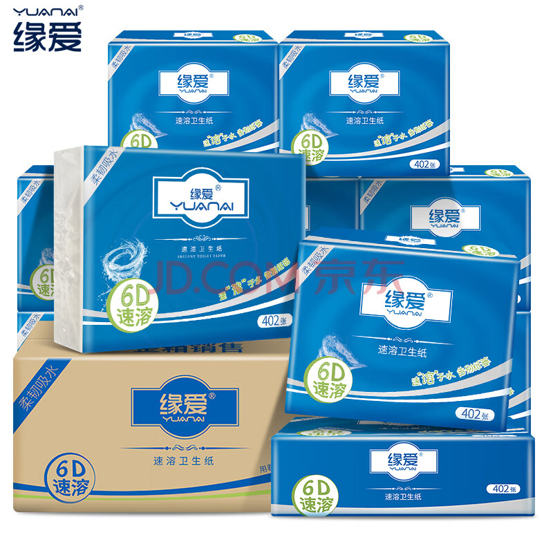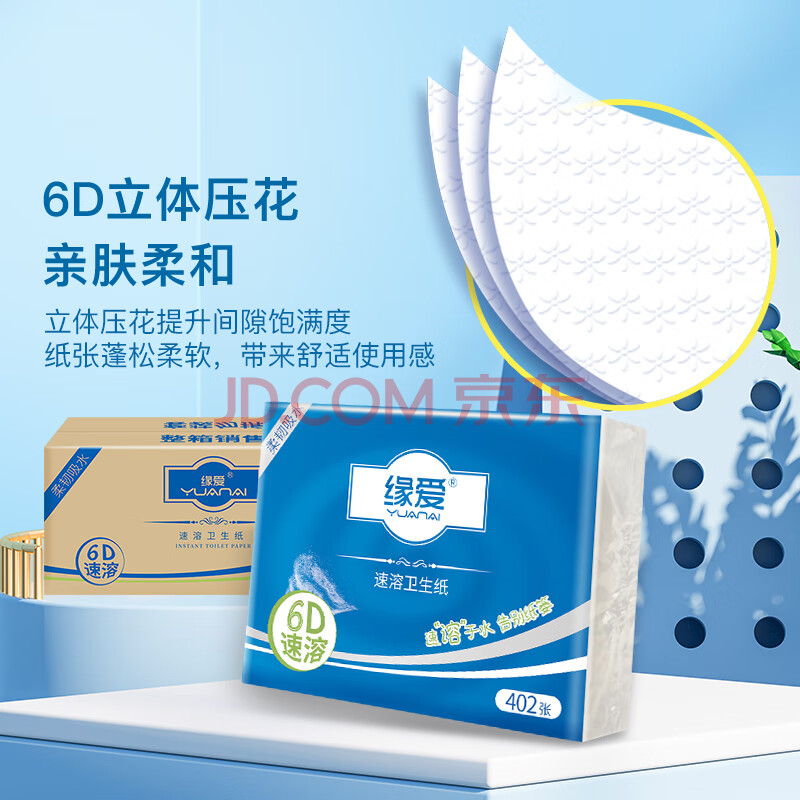 商品相册:缘爱平板纸 经典速溶 402张*10包 6D压花水溶性卫生纸 源头直发包邮第