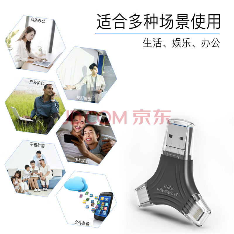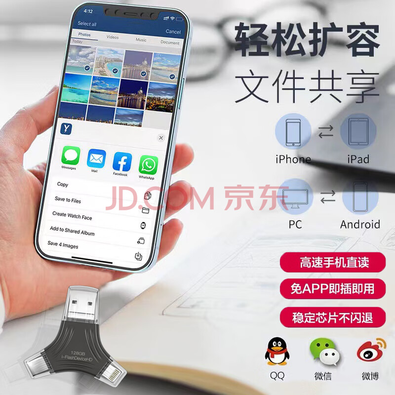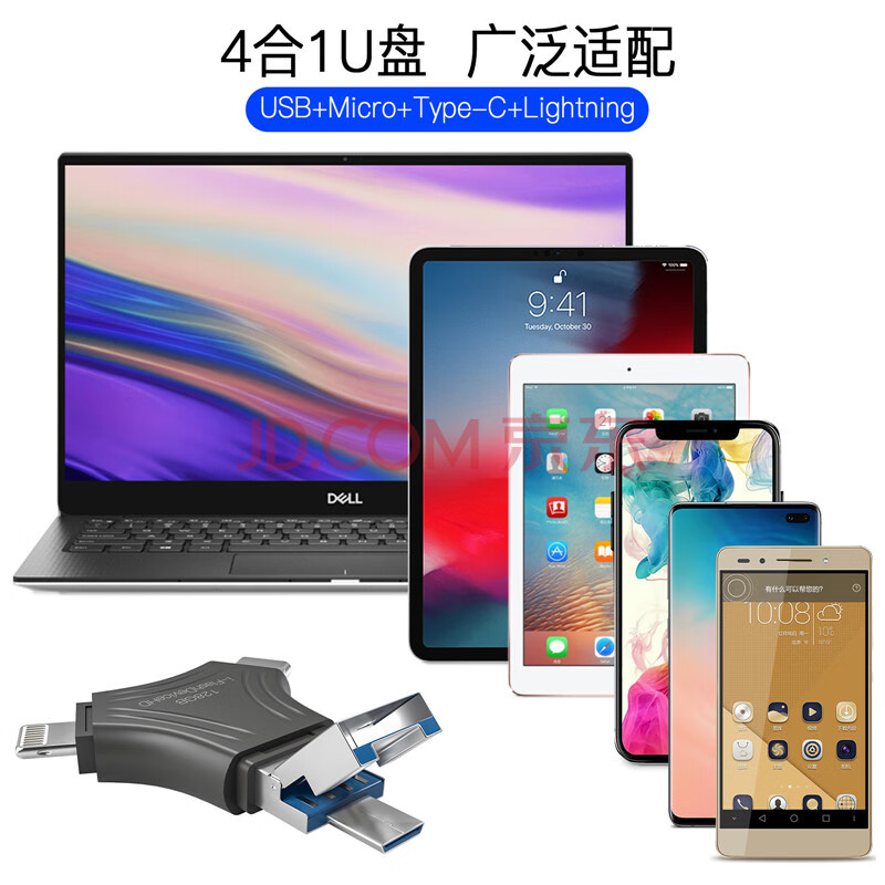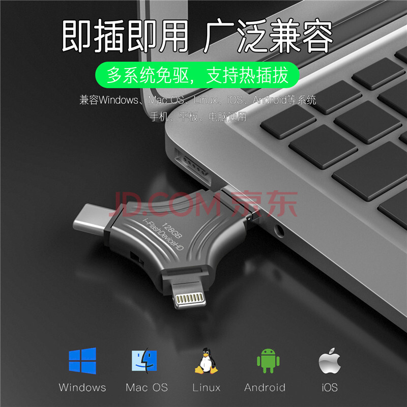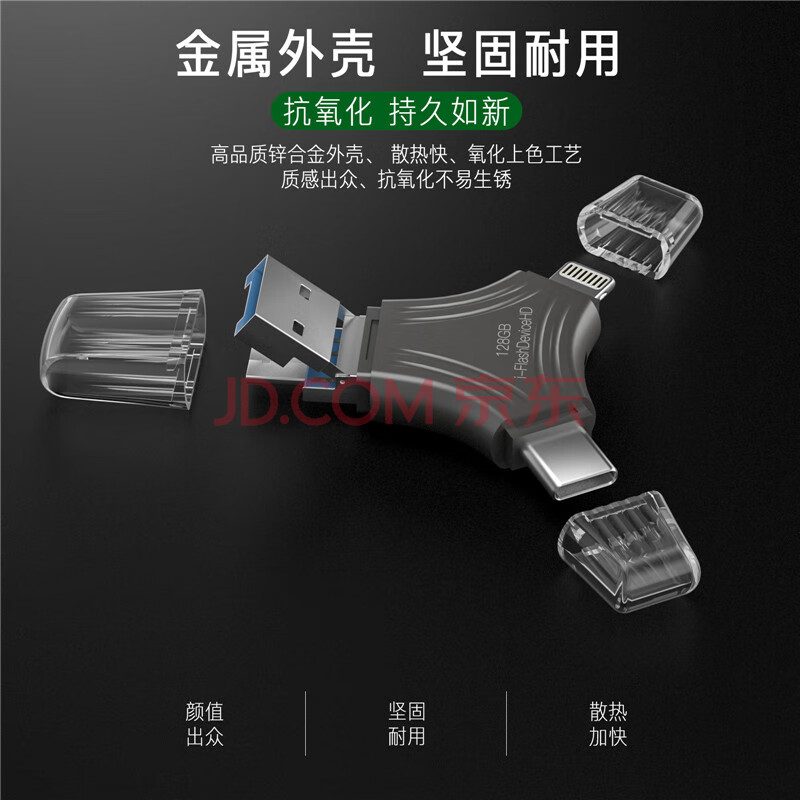 商品相册:JOWOYE苹果U盘128GB华为ipad/iPhone15小米USB3.0储存器Type-c/安卓手机电脑四合一多功能转换内存扩容第1张/共6