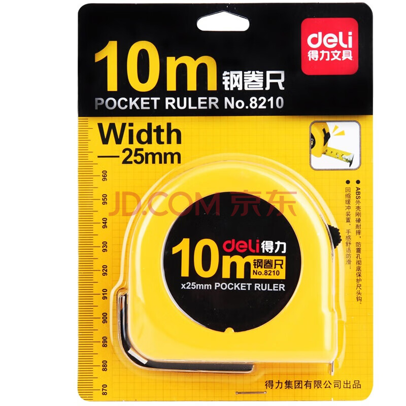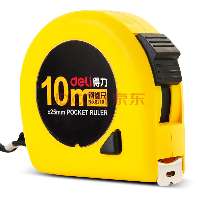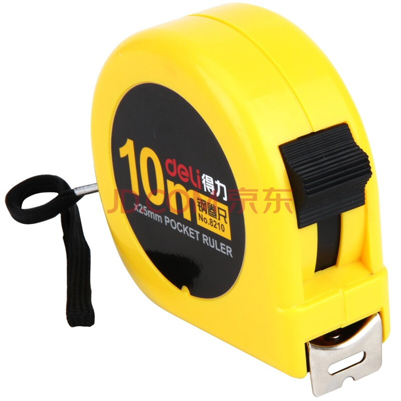 商品相册:得力(deli)10m锁定功能钢卷尺 木工尺装修测量尺子 办公用品 8210 黄第