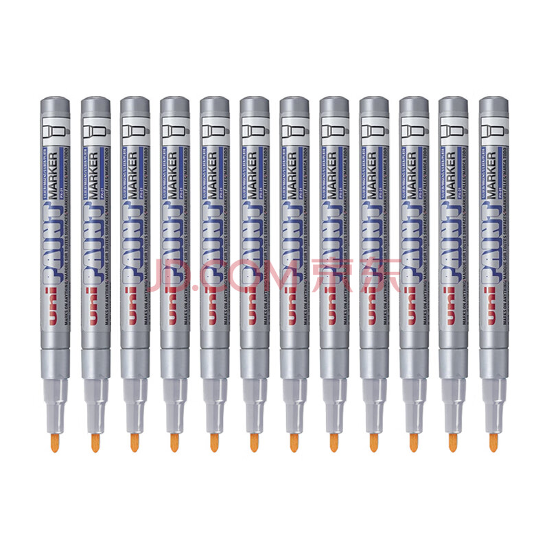 商品相册:uni三菱 PX-21 小字油漆笔 0.8-1.2mm工业记号笔物流笔(可用于汽车补漆)银色12支装第