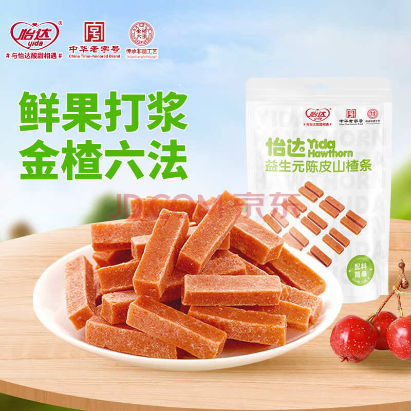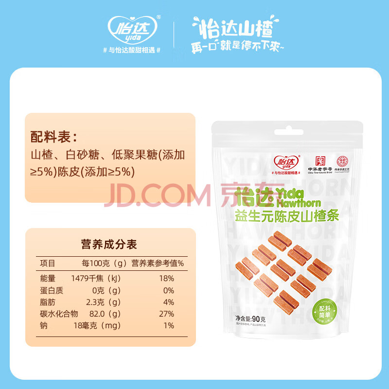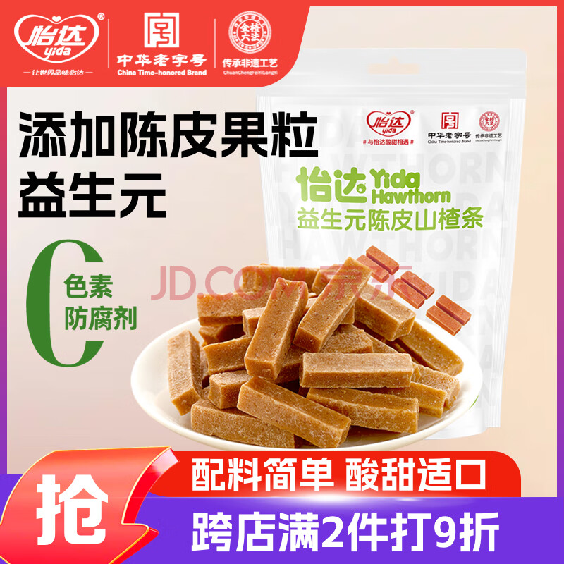 商品相册:怡达益生元陈皮山楂条90g 0添加防腐剂 山楂干片蜜饯果干零食第
