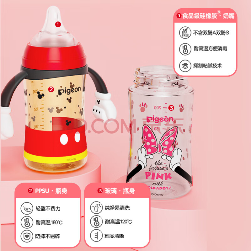 商品相册:贝亲(Pigeon)PPSU迪士尼双把手奶瓶330ml LL号奶嘴 米奇印象 9月+ AA239第
