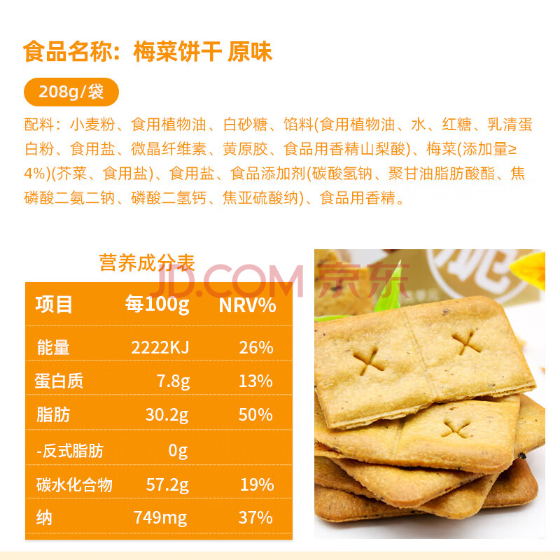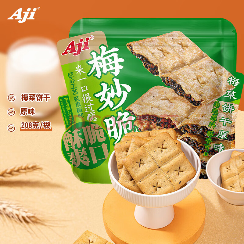 商品相册:Aji 原味梅菜饼干208g/袋 薄脆饼干 锅盔办公室网红休闲零食 下午茶第