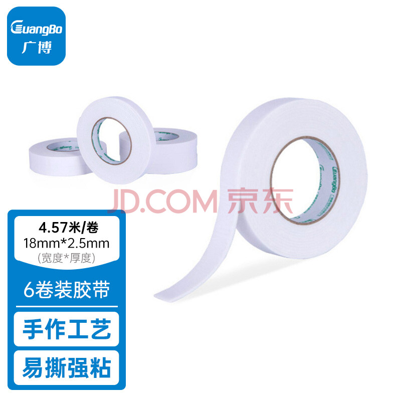 商品相册:广博(GuangBo)高粘性6卷装18mm*5y 4.57米/卷双面海绵胶带泡棉泡沫胶布办公用品HM-9第