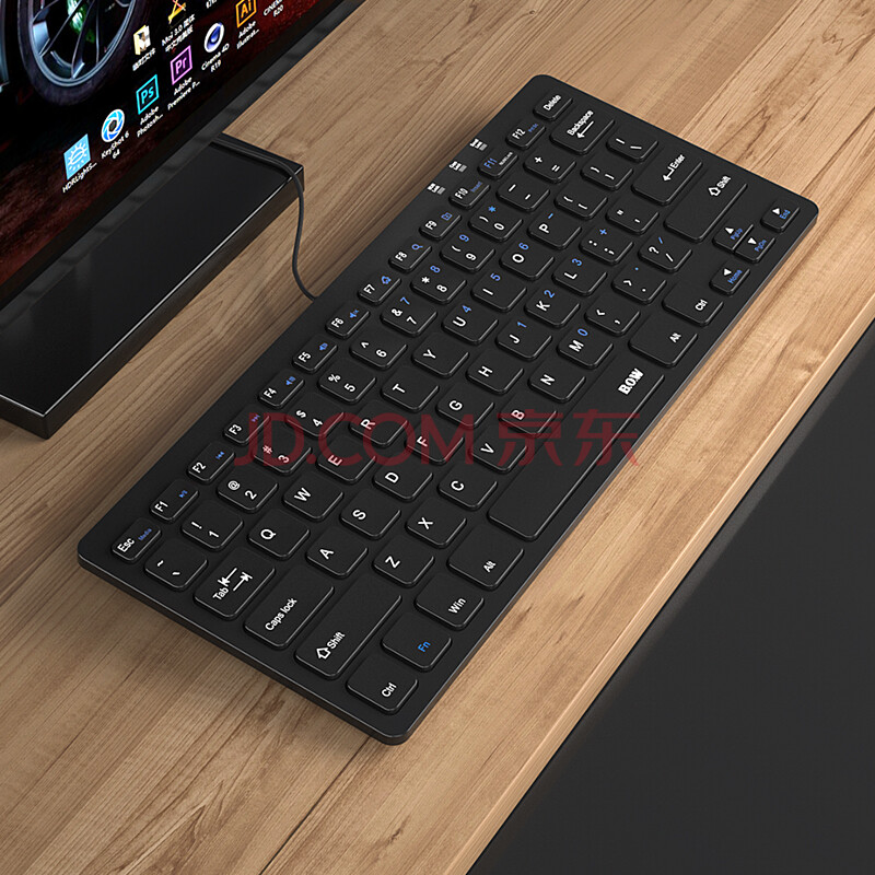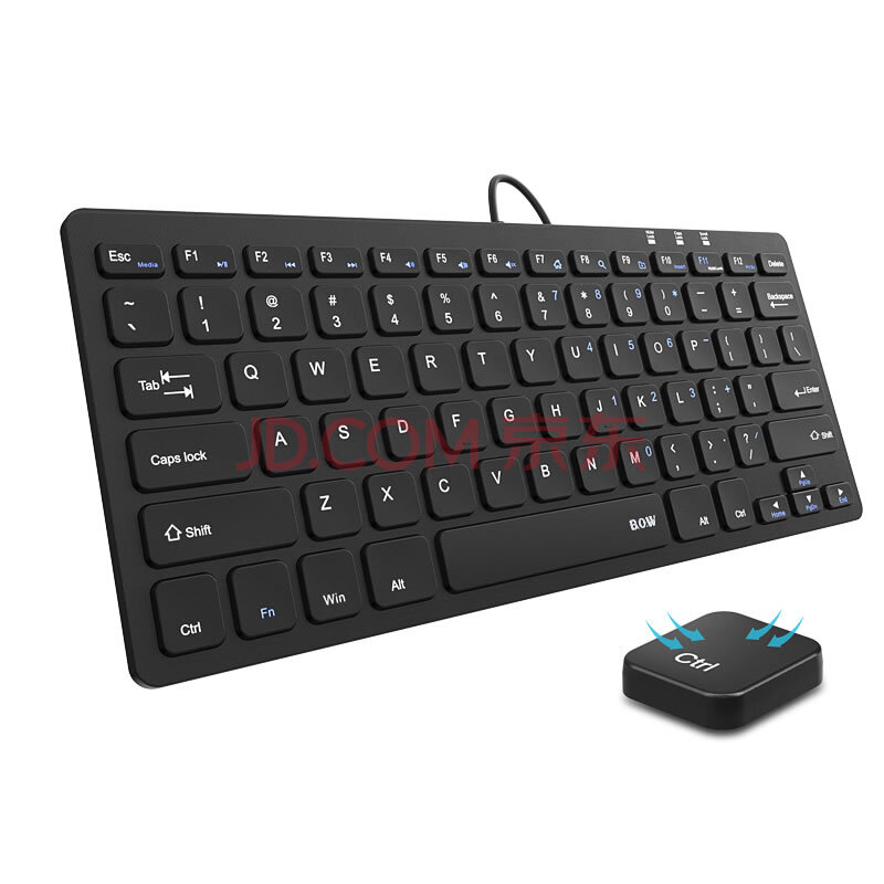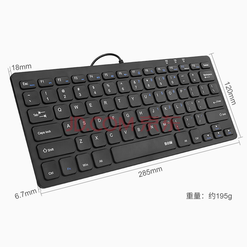 商品相册:B.O.W航世 HW098A 超薄有线办公键盘 便携键盘78键 台式笔记本键盘 巧克力键帽黑色 企业采购第