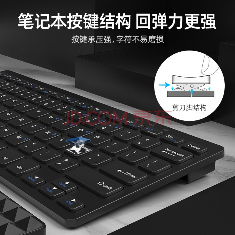 商品相册:B.O.W航世 HW098键鼠套装 无线键鼠套装办公 超薄便携鼠标键盘78键巧克力按键 黑色第