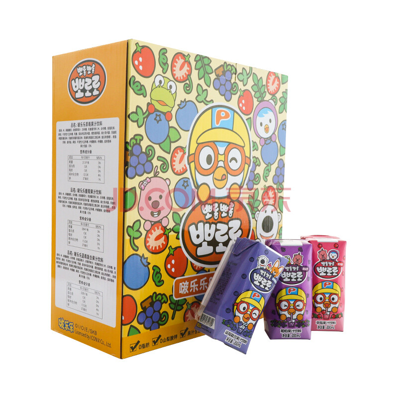 商品相册:啵乐乐pororo果汁饮料礼盒装混合味200ml*12瓶儿童果味饮料第