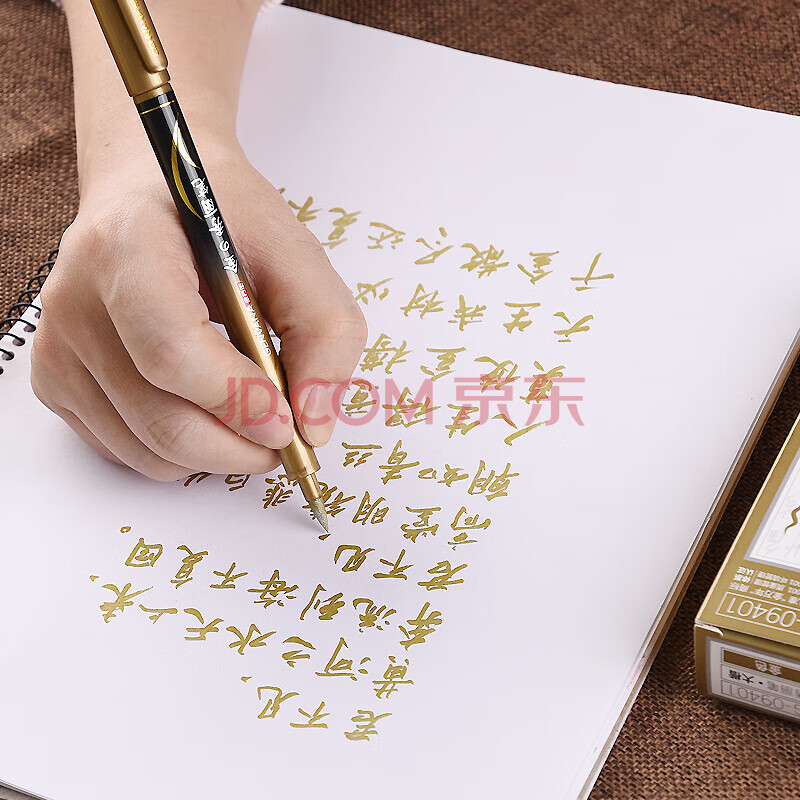 商品相册:金万年12支大楷 金色可加墨秀丽笔毛笔写春联练字笔请帖签名笔抄经软硬笔 G-09401第