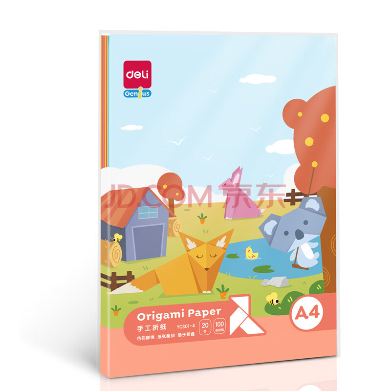 商品相册:得力(deli)20色100张A4手工折纸 学生幼儿园折纸彩纸剪纸 美术课DIY手工纸儿童生日开学文具第1张/共6
