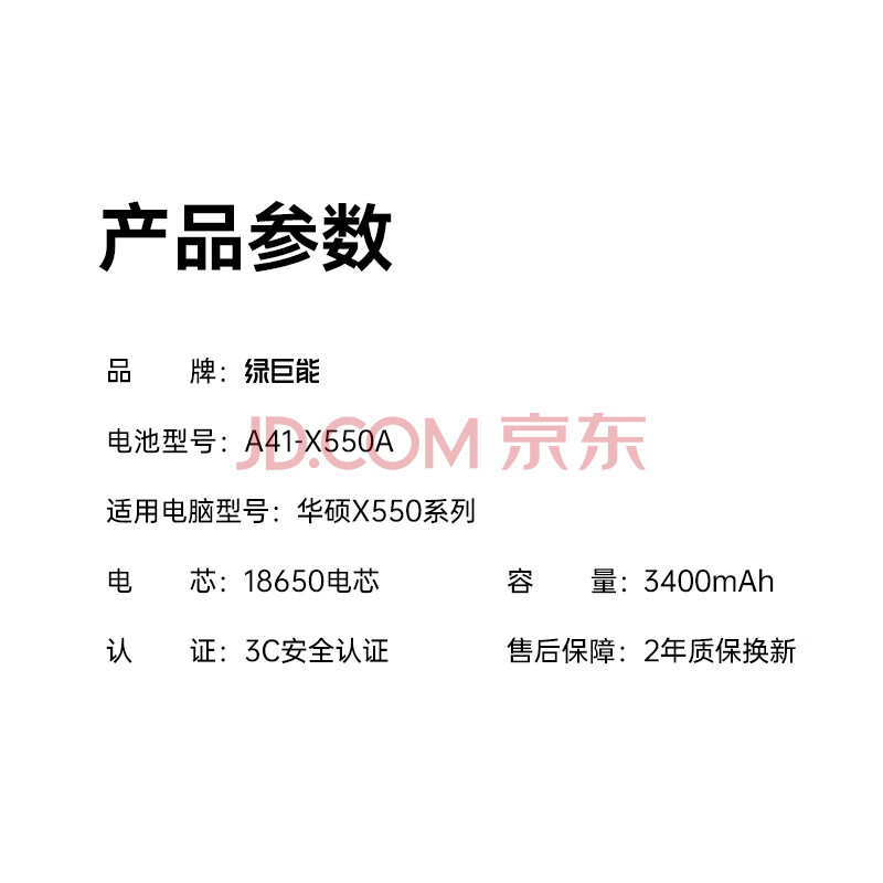 商品相册:绿巨能(llano)适用华硕笔记本电池A41-X550A适用FX50J X450V X550V X550C K550J Y481C Y581C X450C F550V电池第