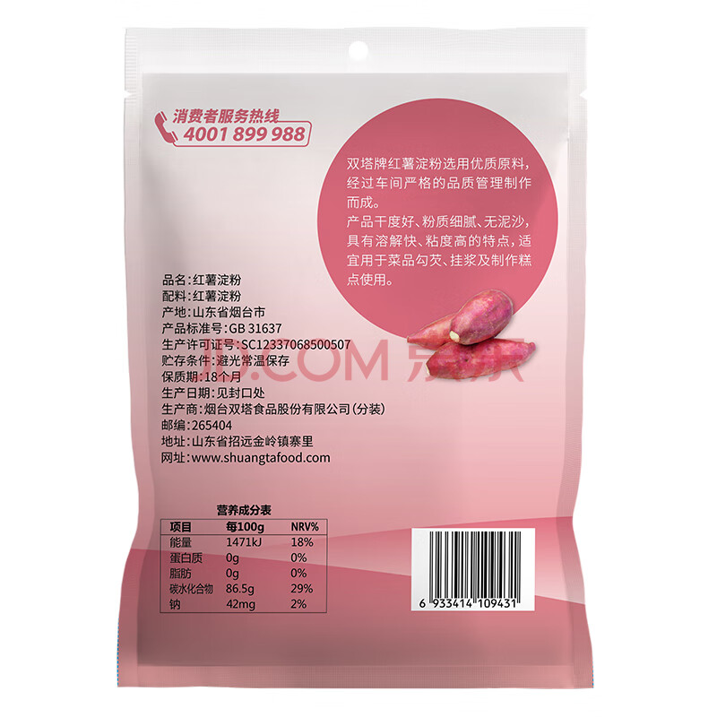 商品相册:双塔 红薯淀粉200g家用生粉炸酥肉裹肉粉勾芡凉粉饼干蛋糕烘焙原料第