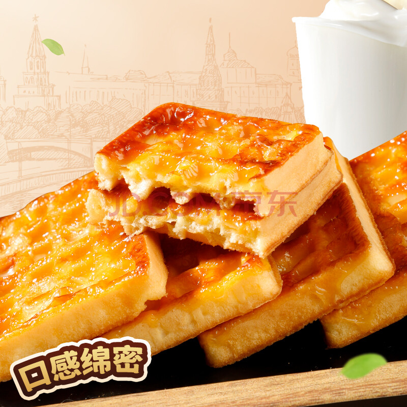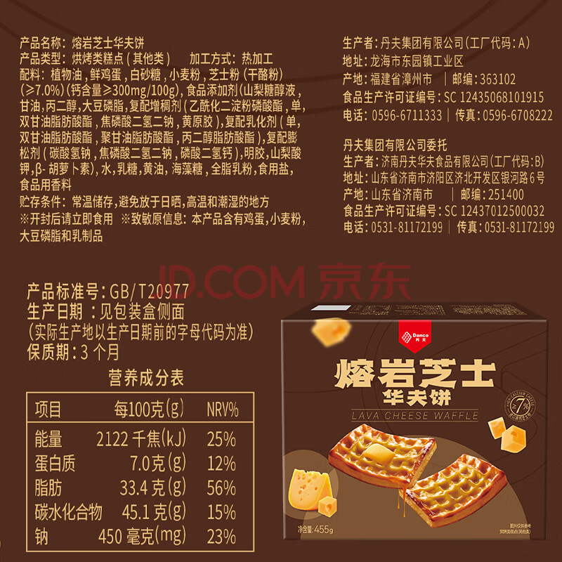 商品相册:丹夫岩烧芝士华夫饼455g/盒 芝士力量早餐面包点心下午茶蛋糕量版装第