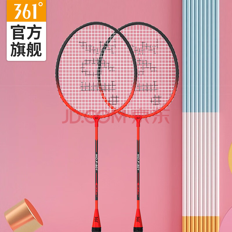 商品相册:361°羽毛球拍套装含手胶经典新手入门训练羽拍2支双拍已穿线【橙色】第