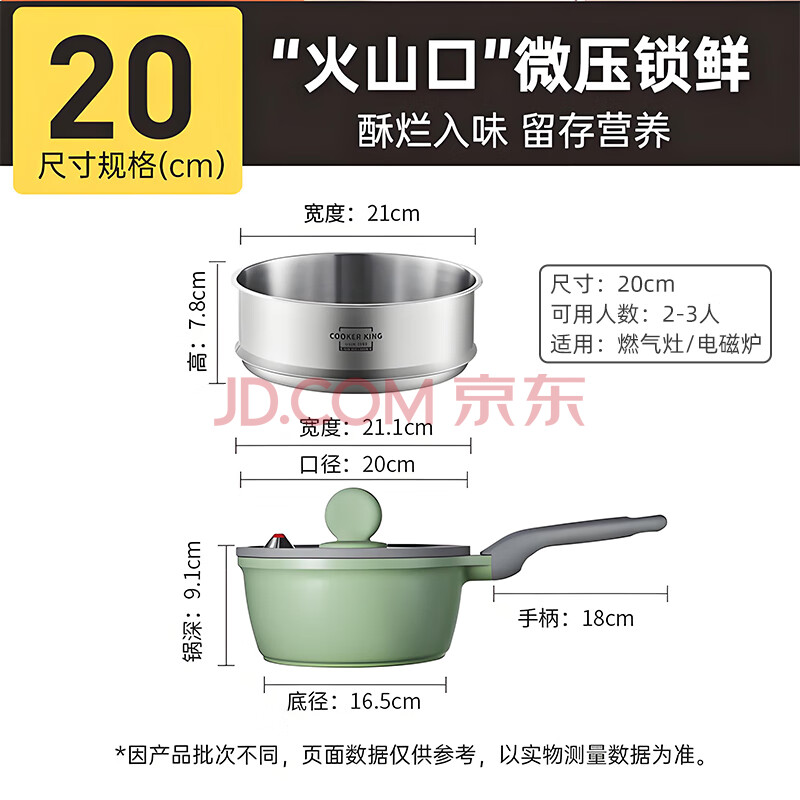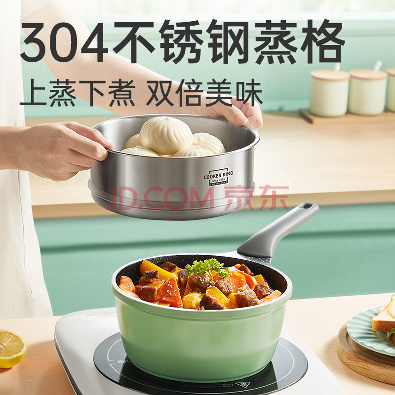 商品相册:炊大皇 专利微压奶锅 易洁超轻微压烹饪 泡面锅宝宝婴儿辅食锅20带蒸屉第